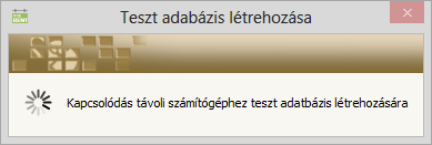 üzenet jelenik meg, mely jelzi, hogy a program megkisérli felvenni a kapcsolatot a teszt szerverrel, és letérehozni a teszt adatbázist. Amennyiben a művelet sikertelen, akkor a