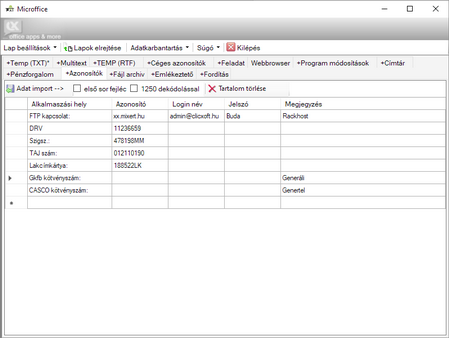 jelszó kezelő, ahol különbözőfelhasználói bejelentkezési adatok, PIN kódok tarthatók nyilván,