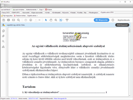 digitális aláírás és pdf, xml, html adatok megjelenítése,